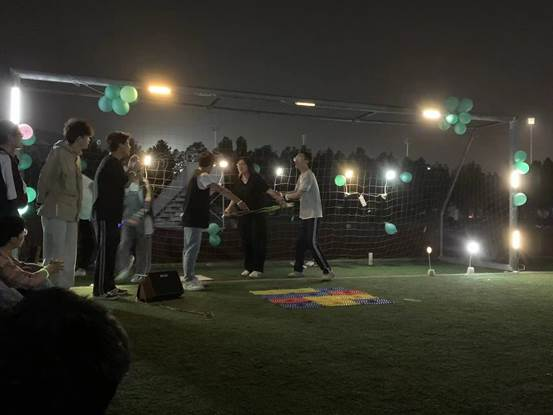 数字炸弹、狼人杀整起。操场的外圈还有一些锻炼身体的老员工们,打羽毛球、打乒乓球、打篮球以及拔河比赛。玩得不亦乐乎,并没有受疫情的影响而压毁青春的气息。疫情期间的欢乐活动,处处有笑容,封校不封心。青春不会被疫情束缚,让我们自信一点,抖去一身琐屑,活出老员工的激情与活力,这才是青春最美好的样子!